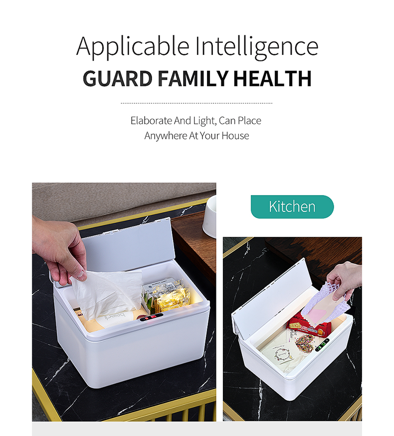 Apply: Small Storage Box or Trash Can for Households, Hotels, Desktop, Car, Office, Bathroom, Bedroom, Kitchen and Study environment where hygiene is a priority. Provides a quiet and tranquil environment. The device is designed for individuals seeking a convenient and sanitary way to access infrared intelligent storage box and trash box functions. Ideal for anyone looking for keep their environment organized.